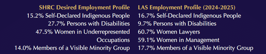 LAS is committed to hiring practices that will assist our organization in meeting the employment equity goals set by the Saskatchewan Human Rights Commission (SHRC) as follows: